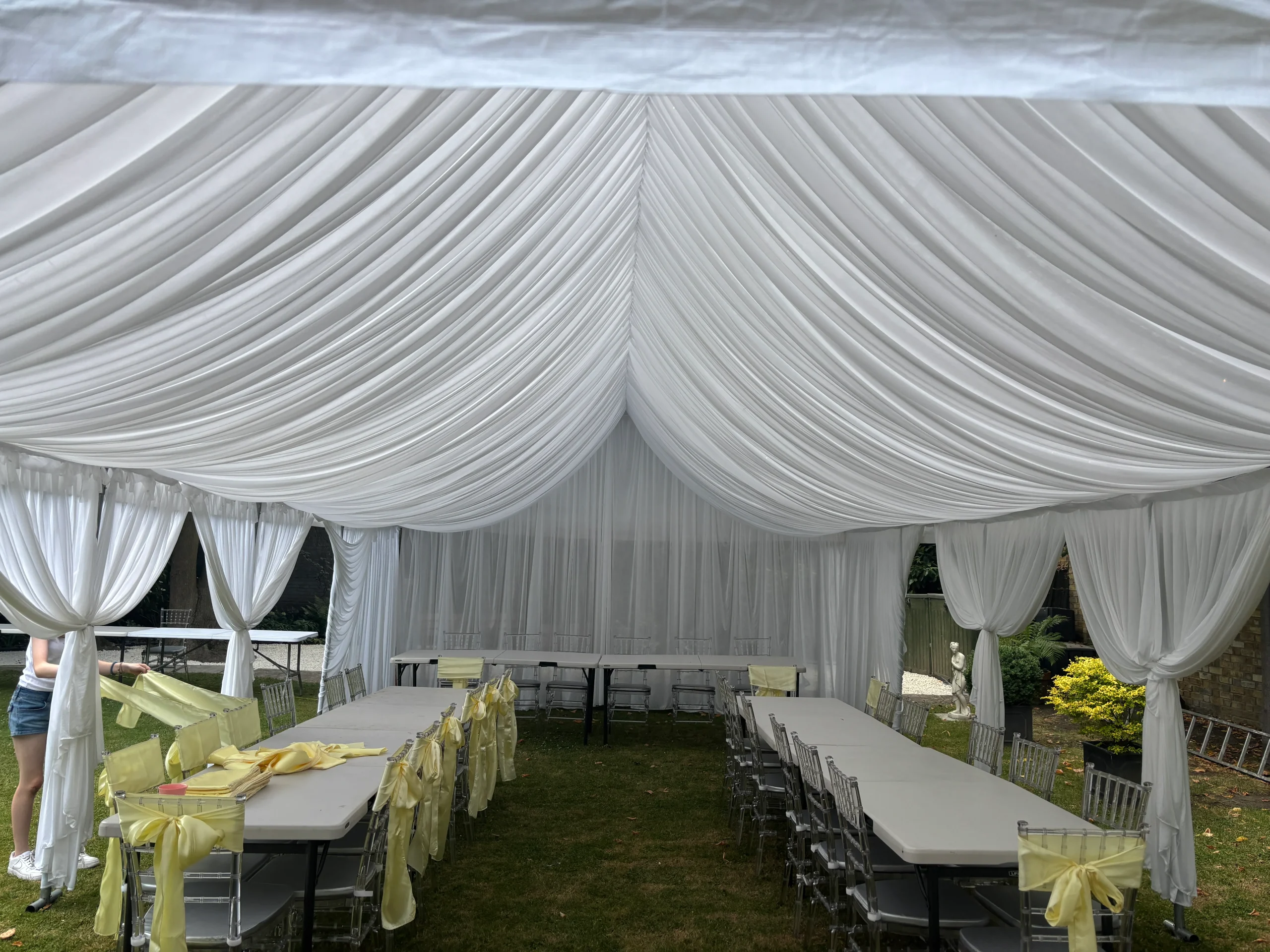 Similar to renting a car, you’ll pick up the marquee from our Stanmore warehouse in North West London (HA7 1NR) and return it on the agreed-upon return date. We’ll supply you with straightforward assembly instructions and an anchoring kit to secure the structure. Additionally, each pole is numbered for a streamlined assembly process. By choosing this option, you can save over 75% compared to traditional hiring costs, leaving you with extra funds to enhance your special occasion.
