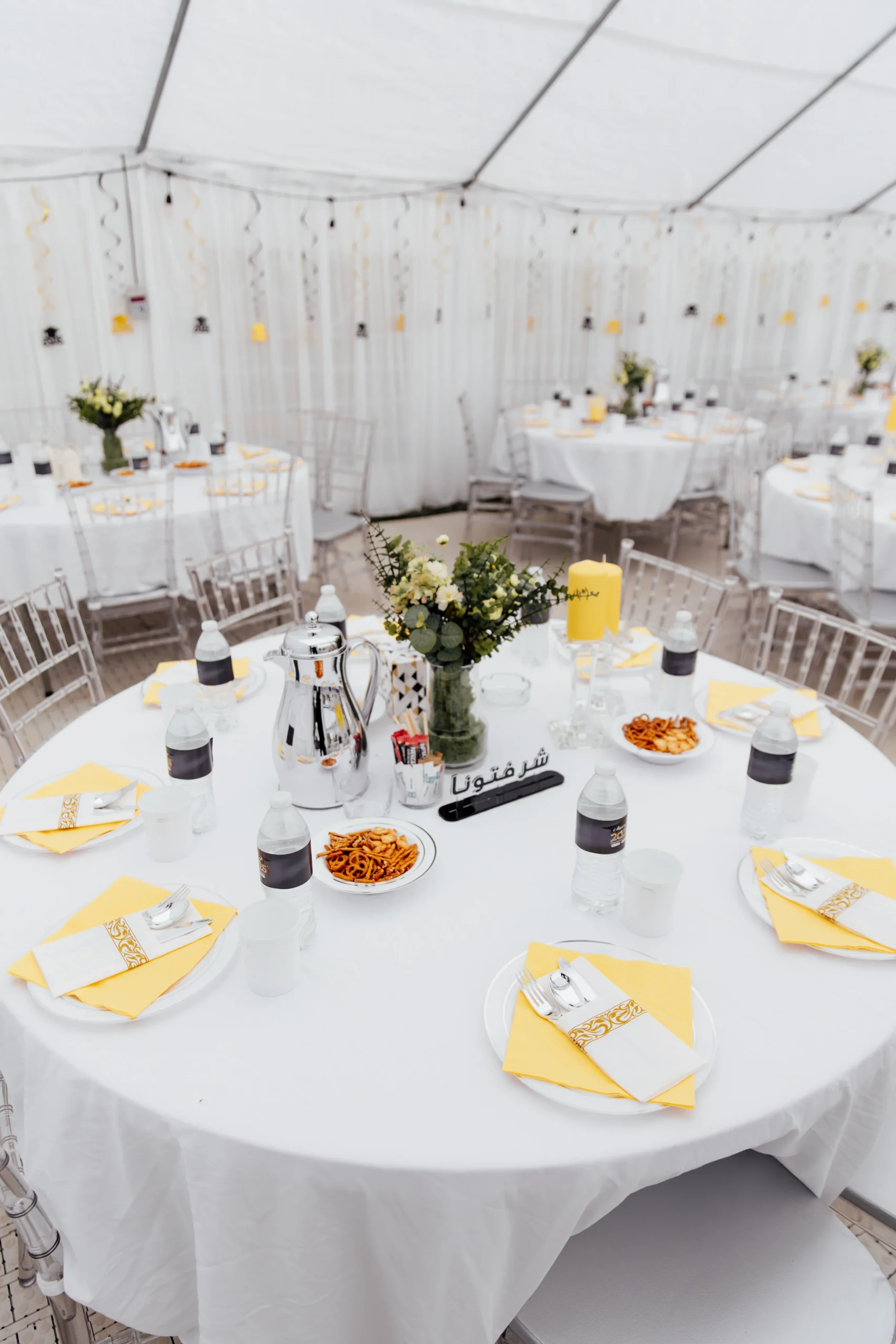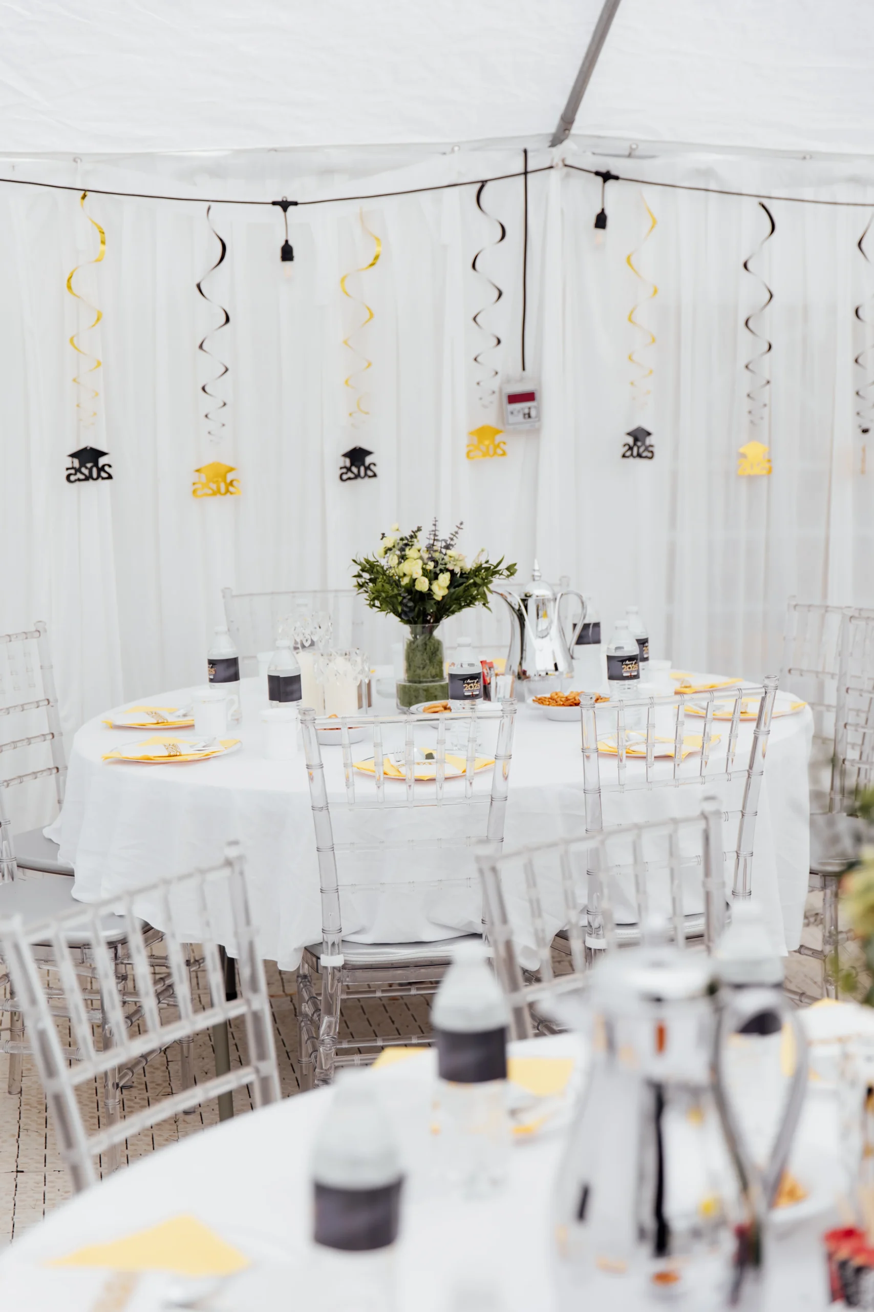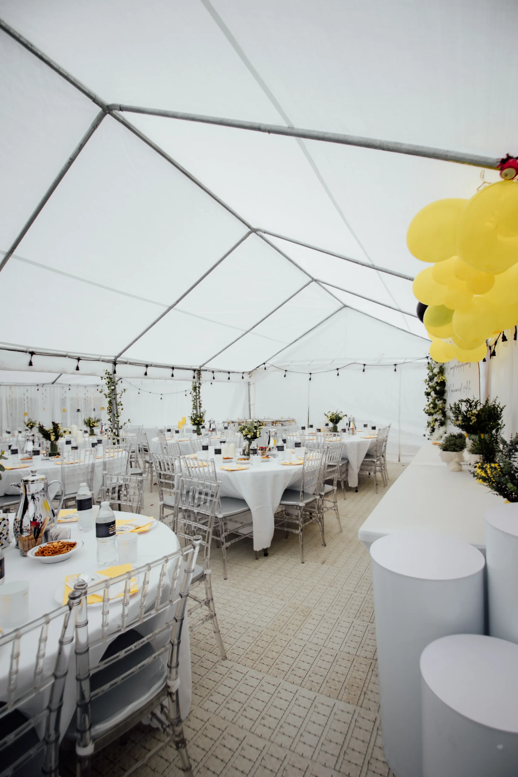 Tables: Folding, round, and bar tables available. Chairs: Folding, Chiavari, and bar stools to match any setting.. Table & Chair Covers: Elegant white covers for a polished look.