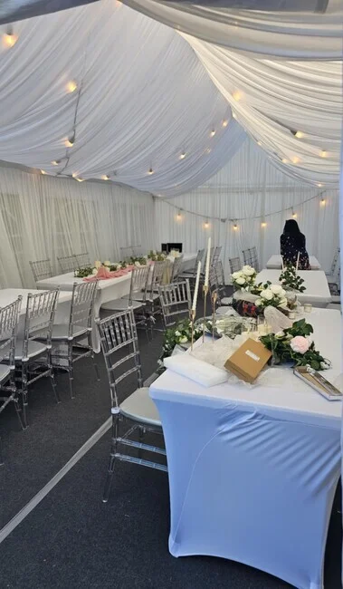 We used Wimba Marquee for our son’s 5th birthday, and it was a fantastic experience! Adam and Daniel looked after us like family, ensuring everything went smoothly. Even with the storm, the marquee stood strong and was so warm and cozy that all our guests were amazed. They were even on standby to make sure it went all well. Despite the rain, the party went on without a hitch, and the guests absolutely loved it. When we had a slight issue with the heating on a Saturday midday, they came around within minutes to fix it, which was incredibly helpful. This is where the customer experience really stood out. The marquee was so convenient, especially since we couldn’t book our local church. They provided chairs and tables, making it a great alternative. Everything was set up perfectly, and the party was a huge hit. We would highly recommend Wimba Marquee for all occasions!