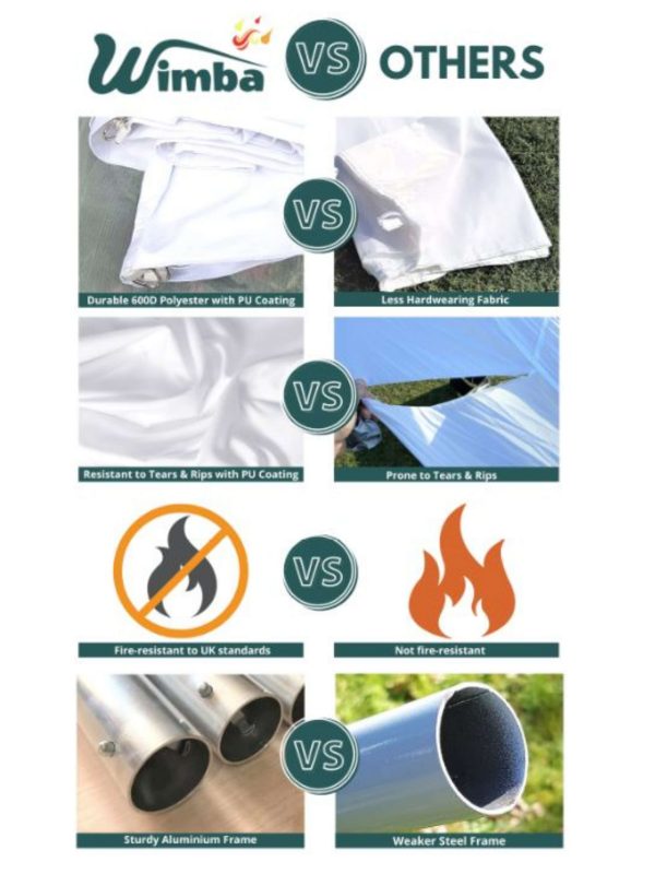 | Stretch Tents are intended for events and other arrangements and are as such only meant for short term temporary assembly and disassembly. Wimba warranty applies only to the normal use of the product, normal wear and tear excepted, in accordance with written use instructions or manual. The warranty does not apply to damage caused by accident, abuse, weather conditions, misuse, modification or incorrect dismantle, erection, packing and storage of the product. |
