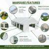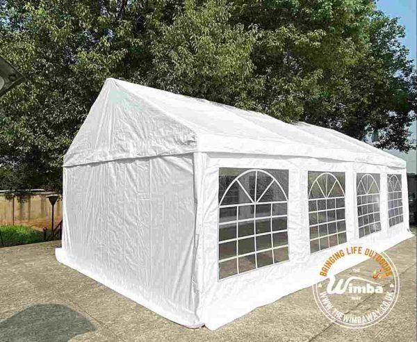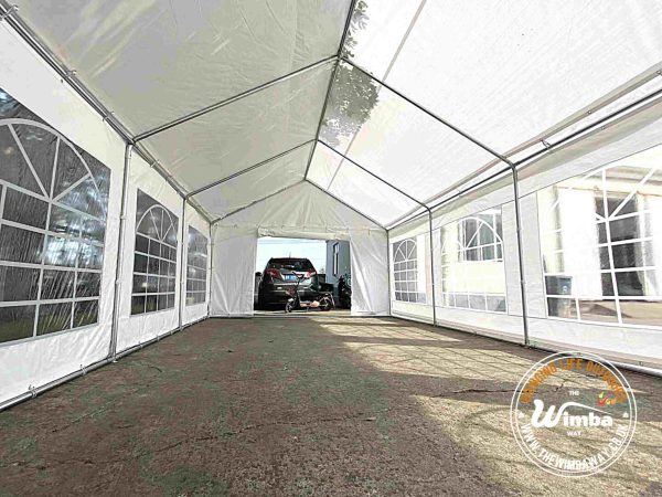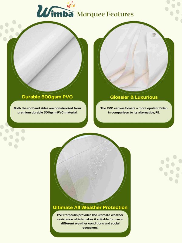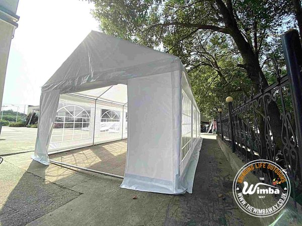 Our Deluxe Heavy-Duty Plus range is our grade 2 range. Like all our marquees, the frame is made of galvanized steel that is protected against corrosion. This range also comes complete with hard wearing 500gsm PVC tarpaulin for both the roof and side panels and a ground bar for extra stability.