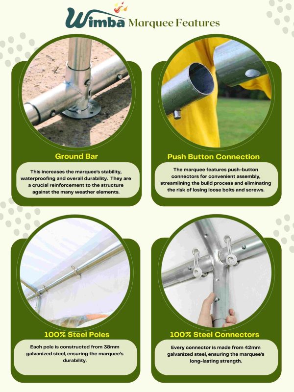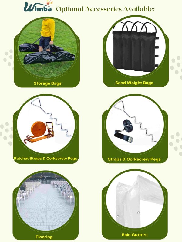 | Roof cross bar included | No – It is not necessary, but we provide for our larger 6x12m and 7x14m models. |