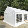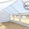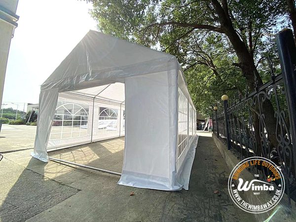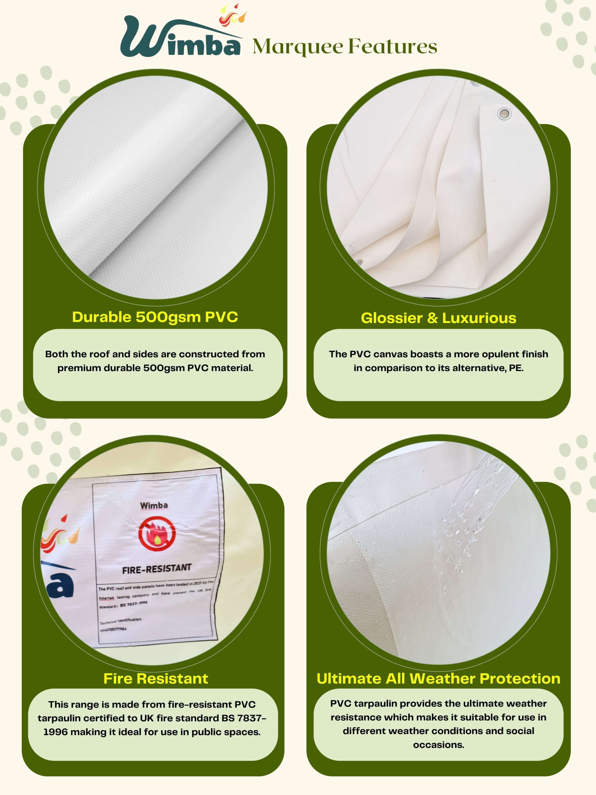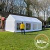 Our Commercial Grade range is our highest grade 1 range. Like all our marquees, the frame is made of galvanized steel that is protected against corrosion. This range also comes complete with hard wearing 500gsm PVC tarpaulin for both the roof and side panels which is also fire-resistant to UK fire standard BS 7837-1996. The range also comes with a ground bar for extra stability.