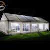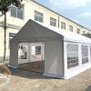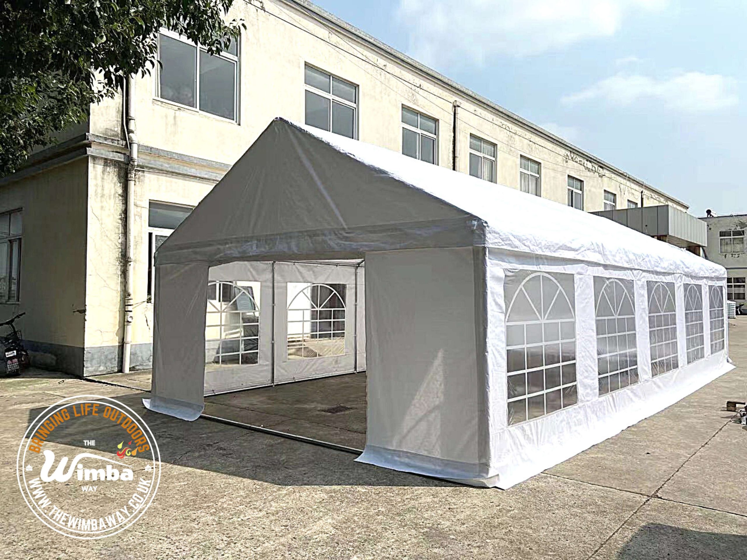 Our Commercial Grade range is our highest grade 1 range. Like all our marquees, the frame is made of galvanized steel that is protected against corrosion. This range also comes complete with hard wearing 500gsm PVC tarpaulin for both the roof and side panels which is also fire-resistant to UK fire standard BS 7837-1996. The range also comes with a ground bar for extra stability.