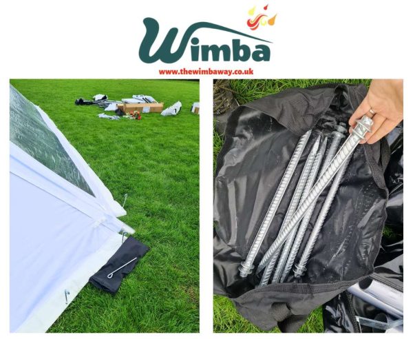 Metal reinforced caps with extra-long 55cm anchoring pegs |