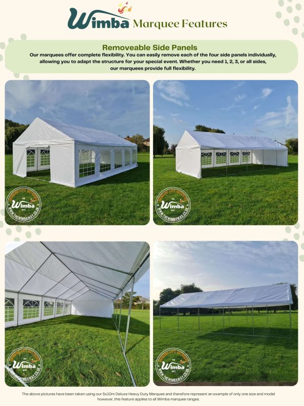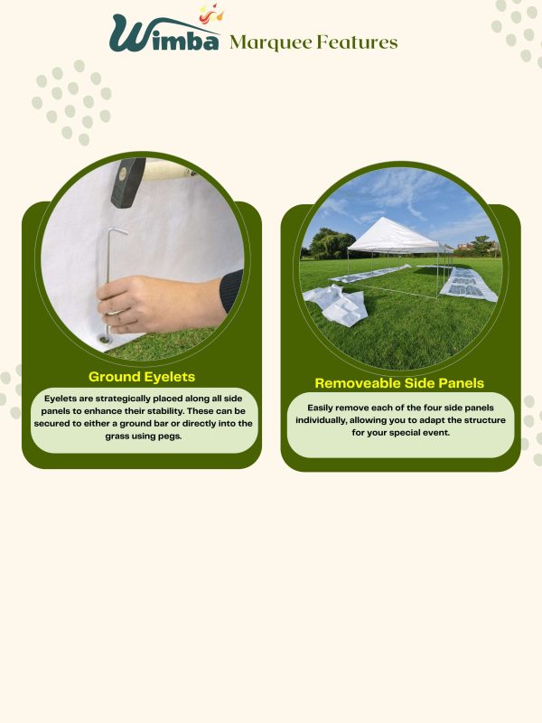 Best used for business events, long- term commercial setups, and all- weather durability.