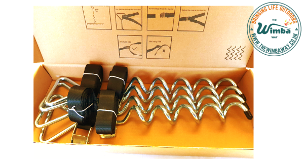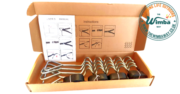 • Durable Materials: The corkscrew pegs are made from hardwearing steel, while the straps are constructed from robust nylon webbing.